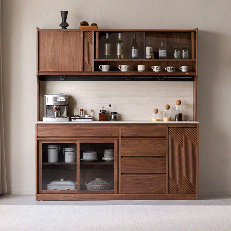 北美黑胡桃实木餐边柜北欧现代简约餐厅岩板储物一体组合餐厅橱柜