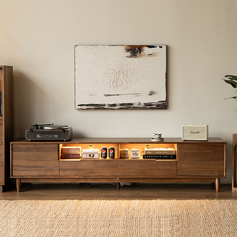 北美黑胡桃木实木电视柜北欧简约客厅落地柜小户型樱桃木储物柜