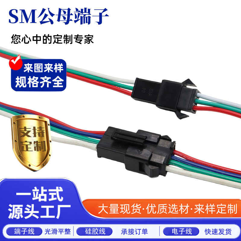 源头定制2.54间距 SM公母端子线 3P 4P端子线各类连接线端子线束
