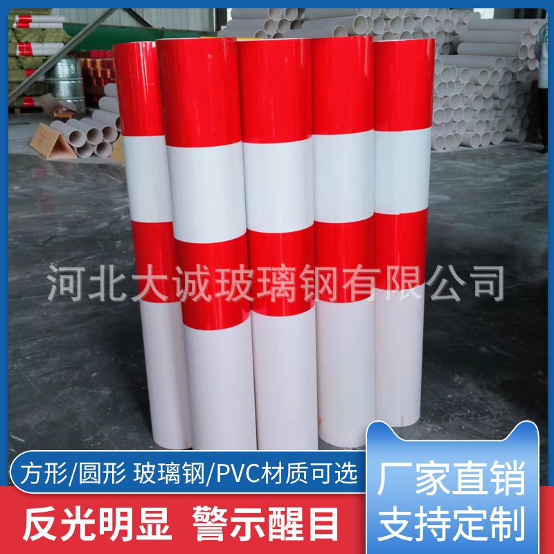 -               玻璃钢红白道口警示桩PVC夜间反光防撞柱方形圆形示警桩百米桩