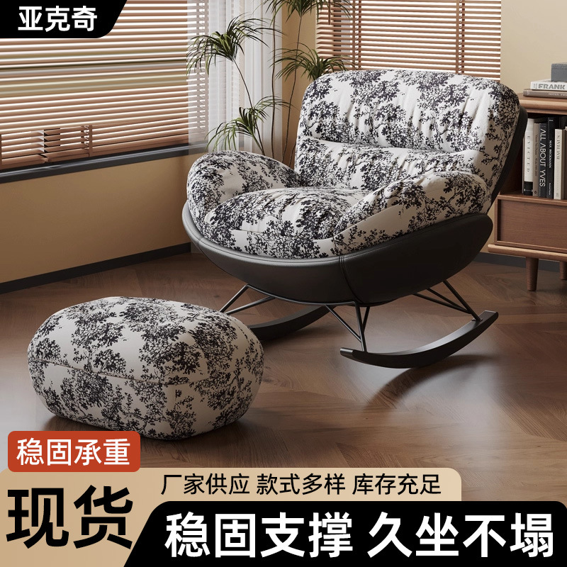 单人沙发摇摇椅躺椅蛋壳摇摇椅布艺复古阳台用家用休闲椅懒人沙发
