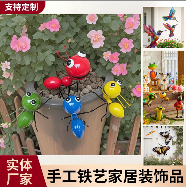 田园蜜蜂甲虫铁艺工艺品花园摆件可爱昆虫家居花园装饰挂件工厂现