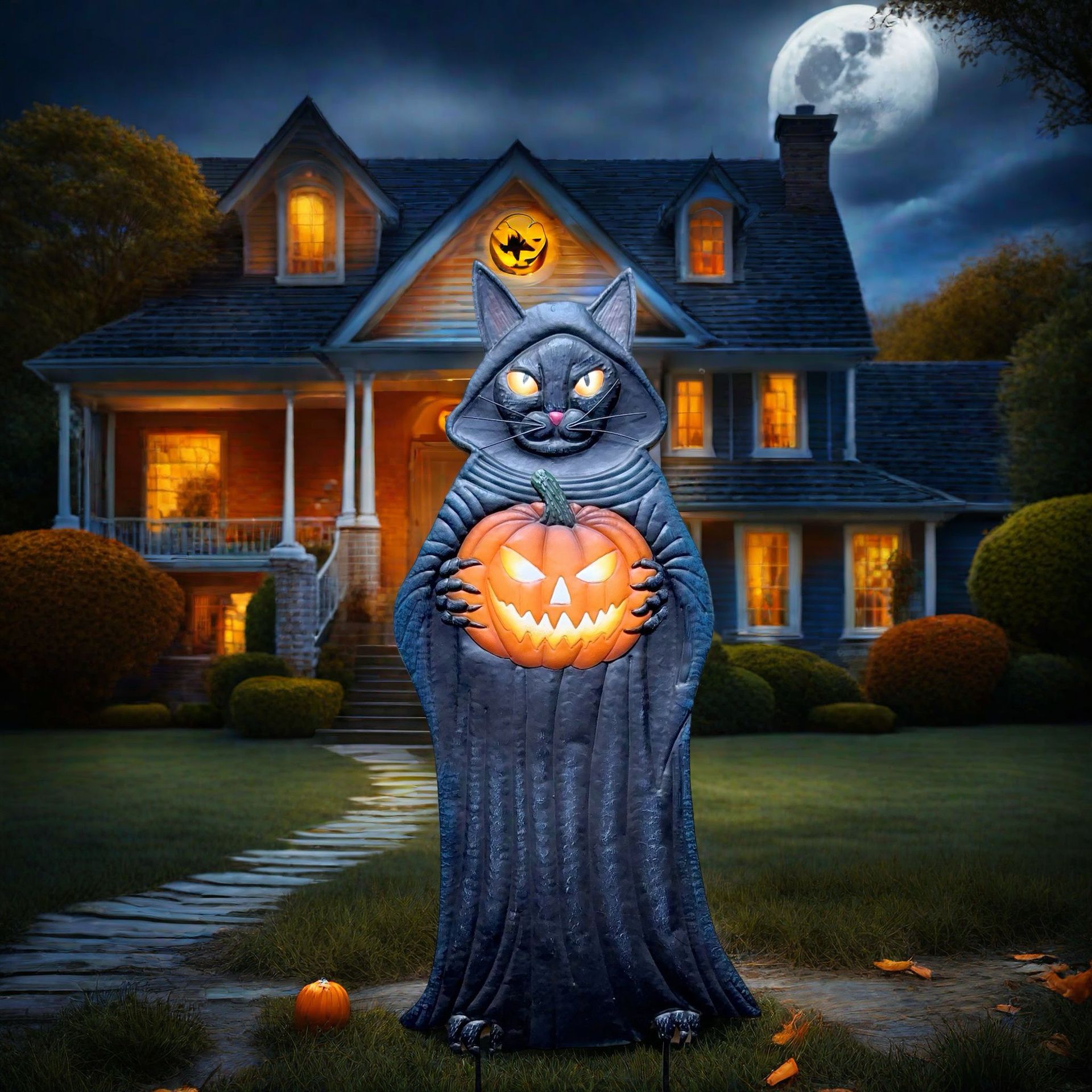 亚马逊新品万圣节黑猫地插草地别墅节日氛围铁艺地插立体节日装饰