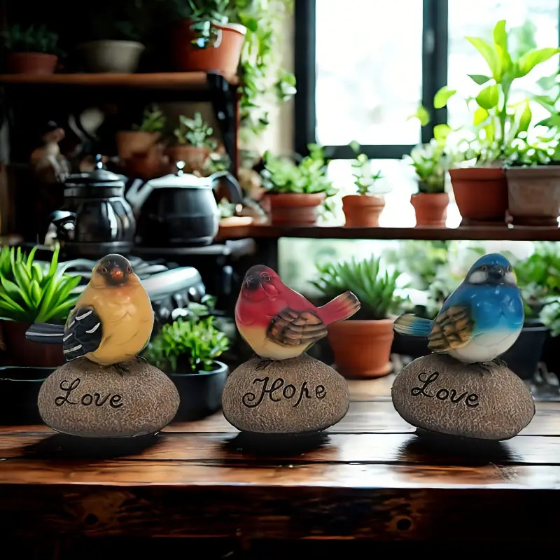 厂家货源树脂红黄蓝三只小鸟工艺品摆件可爱动物桌面立体装饰品制