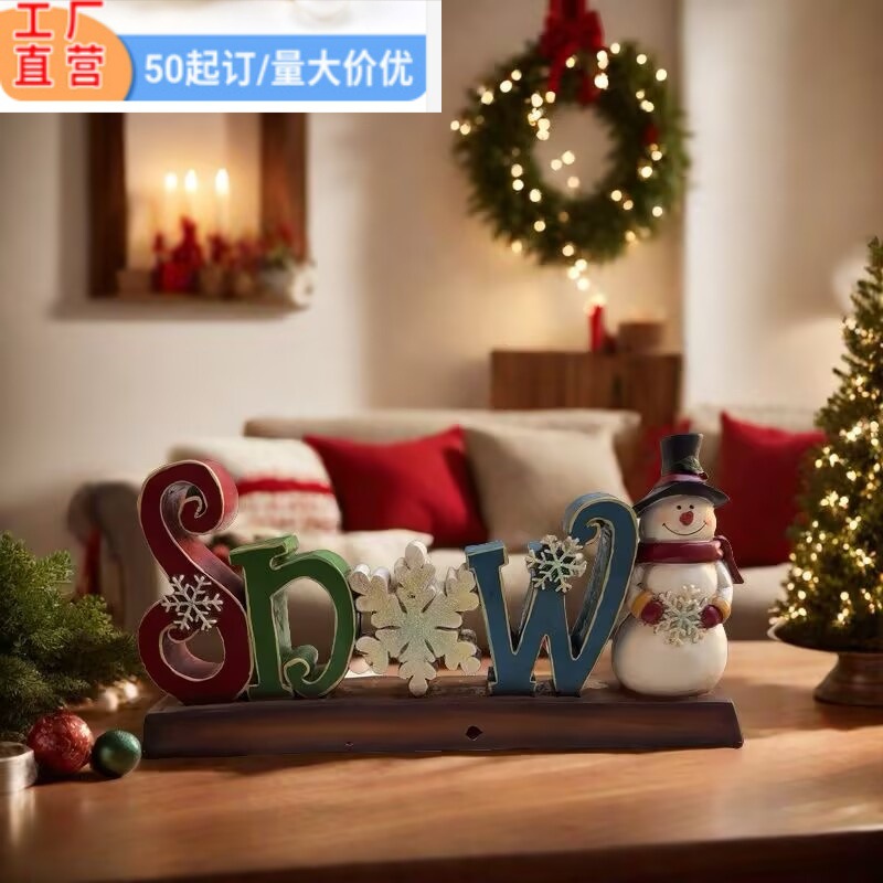 跨境新品圣诞节字母牌桌面宴会草地装饰品节日氛围桌面摆件工艺品