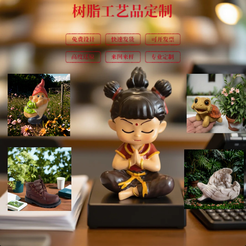 哪吒造型树脂桌面摆件可爱树脂摆件办公桌茶桌中式轻巧摆件定制厂