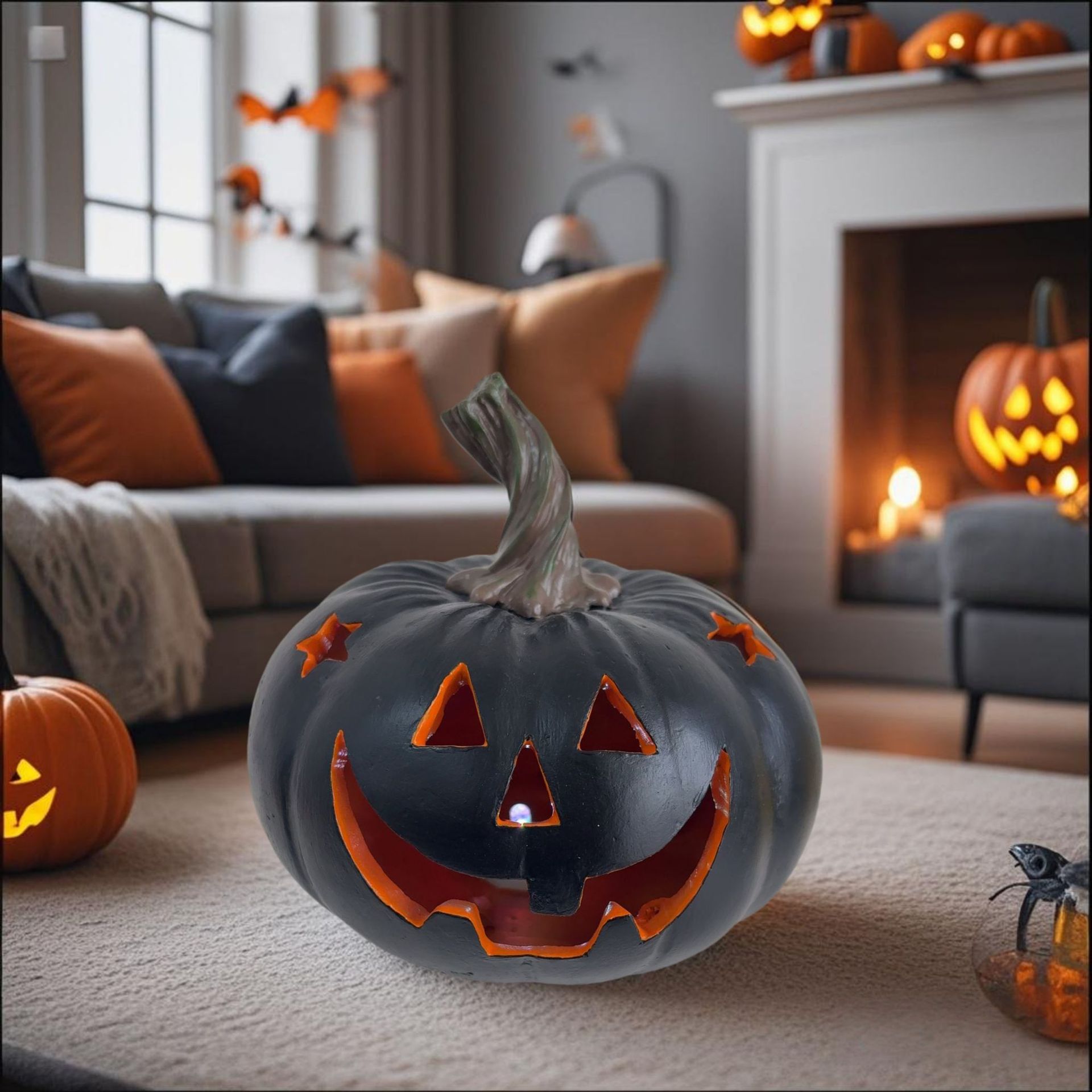 跨境新款万圣节南瓜灯庭院宴会草地装饰品自带IC闪灯树脂南瓜灯制