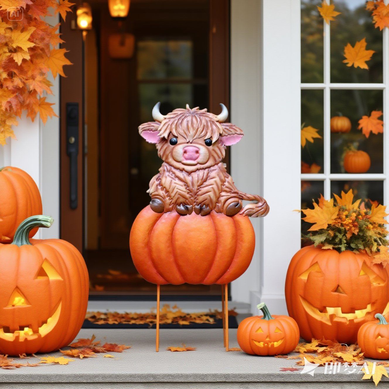 热销新品丰收节感恩节高地牛坐南瓜地插草地别墅节日氛围铁艺地插