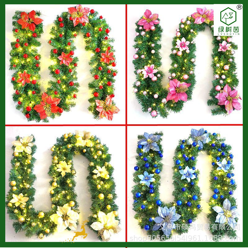 圣诞节装饰藤条2.7米270CM加密豪华门头楼梯扶手装饰藤条花环挂饰