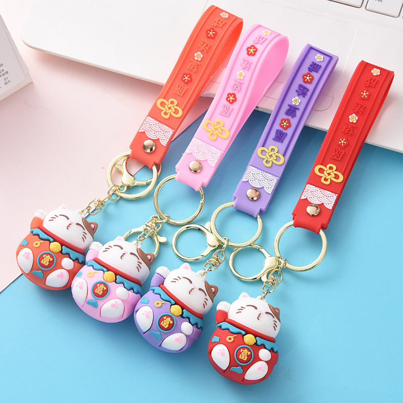 韩版滴胶招财猫钥匙扣包包创意立体卡通挂饰汽车挂件现货批发