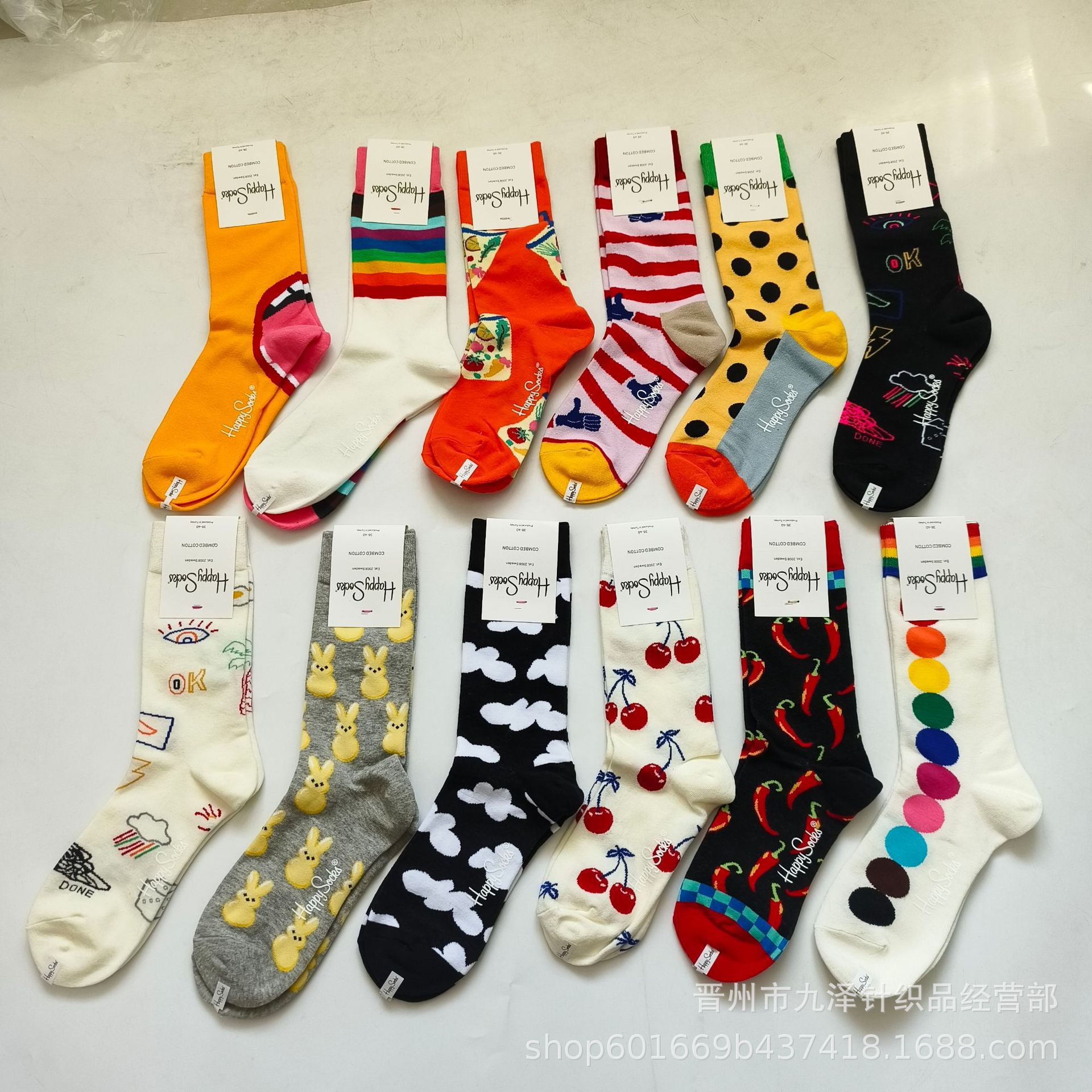 happy新爆女中筒袜瑞典潮HS棉百搭四季袜子