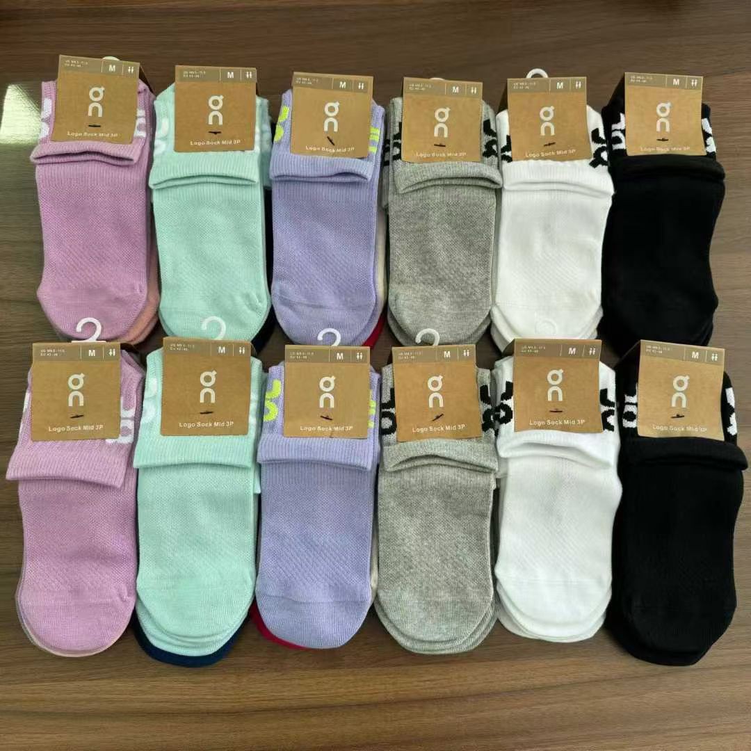 新品昂跑袜子3双装on四季款纯色男女字母潮袜中筒袜跑步运动袜