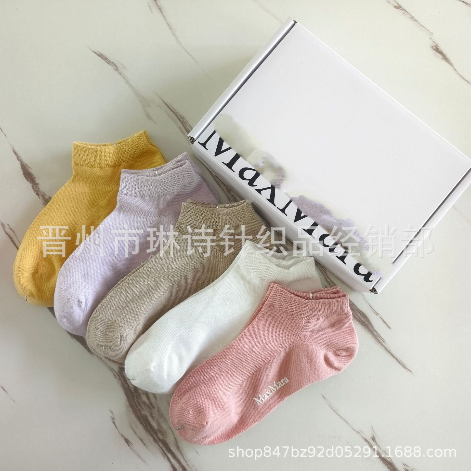 MX夏季盒装糖果色棉袜舒适透气吸汗网眼短袜船袜批发女袜高跟鞋