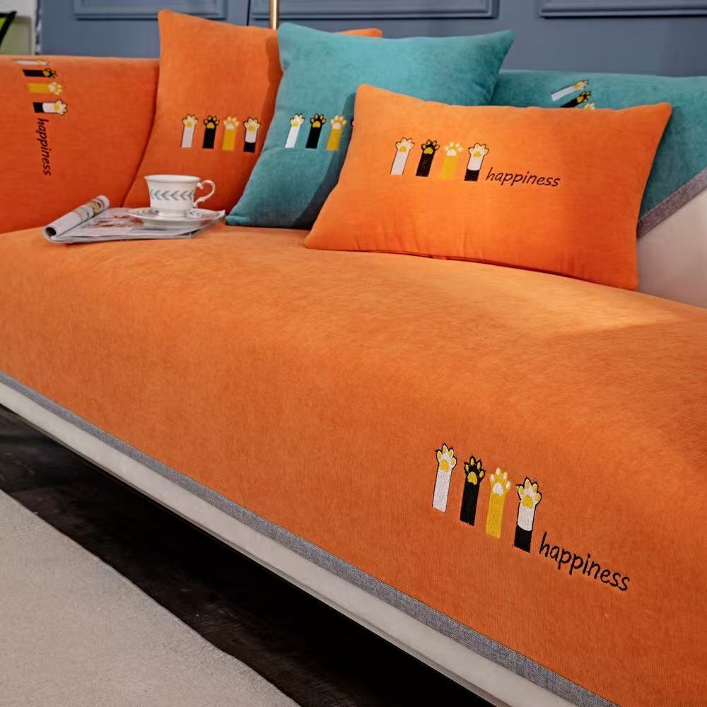 沙发垫现代简约新款时尚花边沙发坐垫套罩纯色雪尼尔沙发垫盖布巾