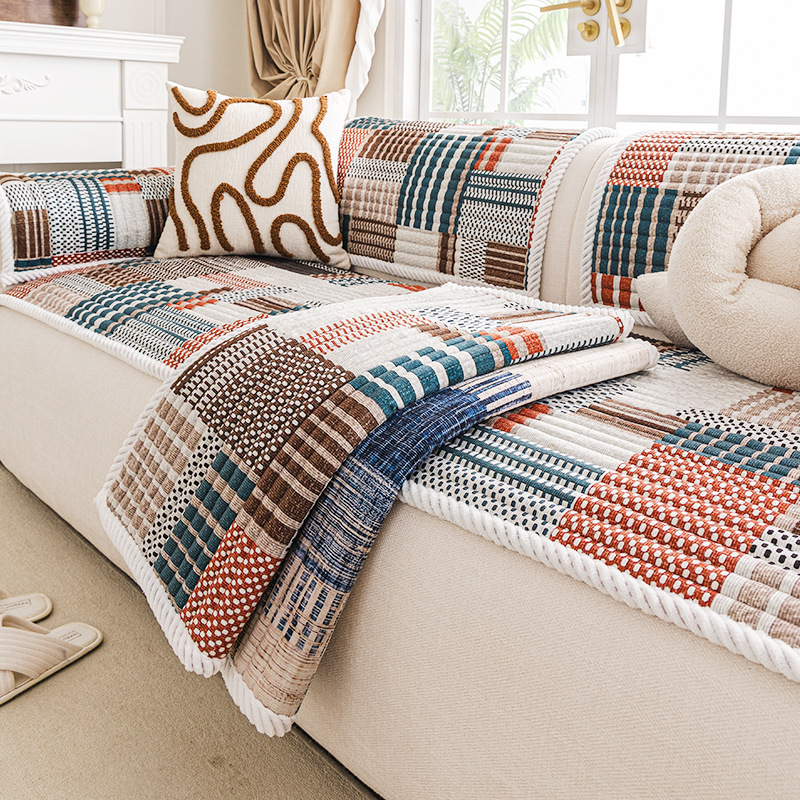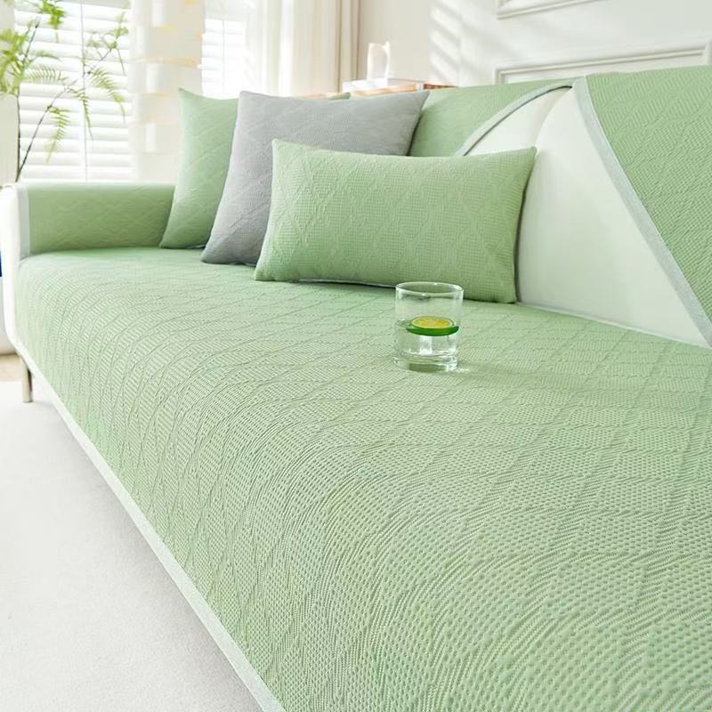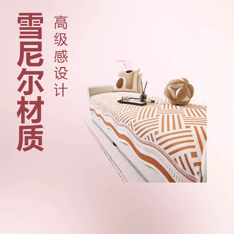 夏季冰丝凉席沙发垫雪尼尔人字纹沙发巾沙发套一片式盖布防滑条纹
