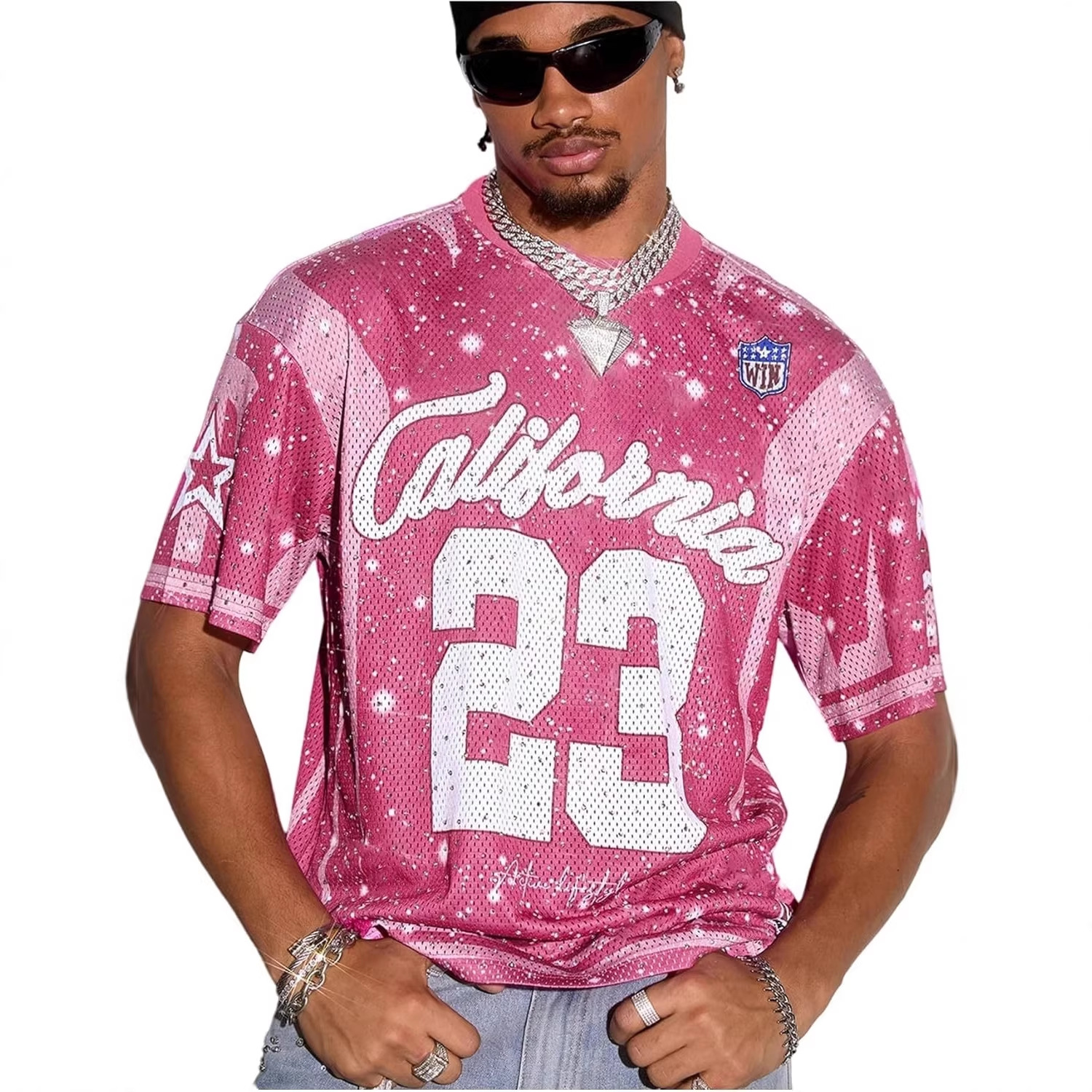 美式复古23 号 California 印花网眼球衣T恤男女夏季潮牌街头短袖