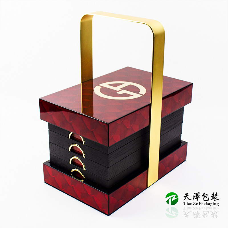 便携式分层礼盒钢琴烤漆礼品木盒实木包装盒个性图案覆盖