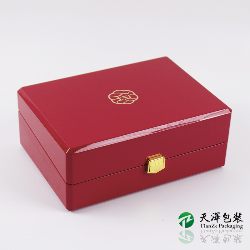 红色钢琴烤漆黄金礼品盒实木黄金首饰盒翻盖式礼品包装盒