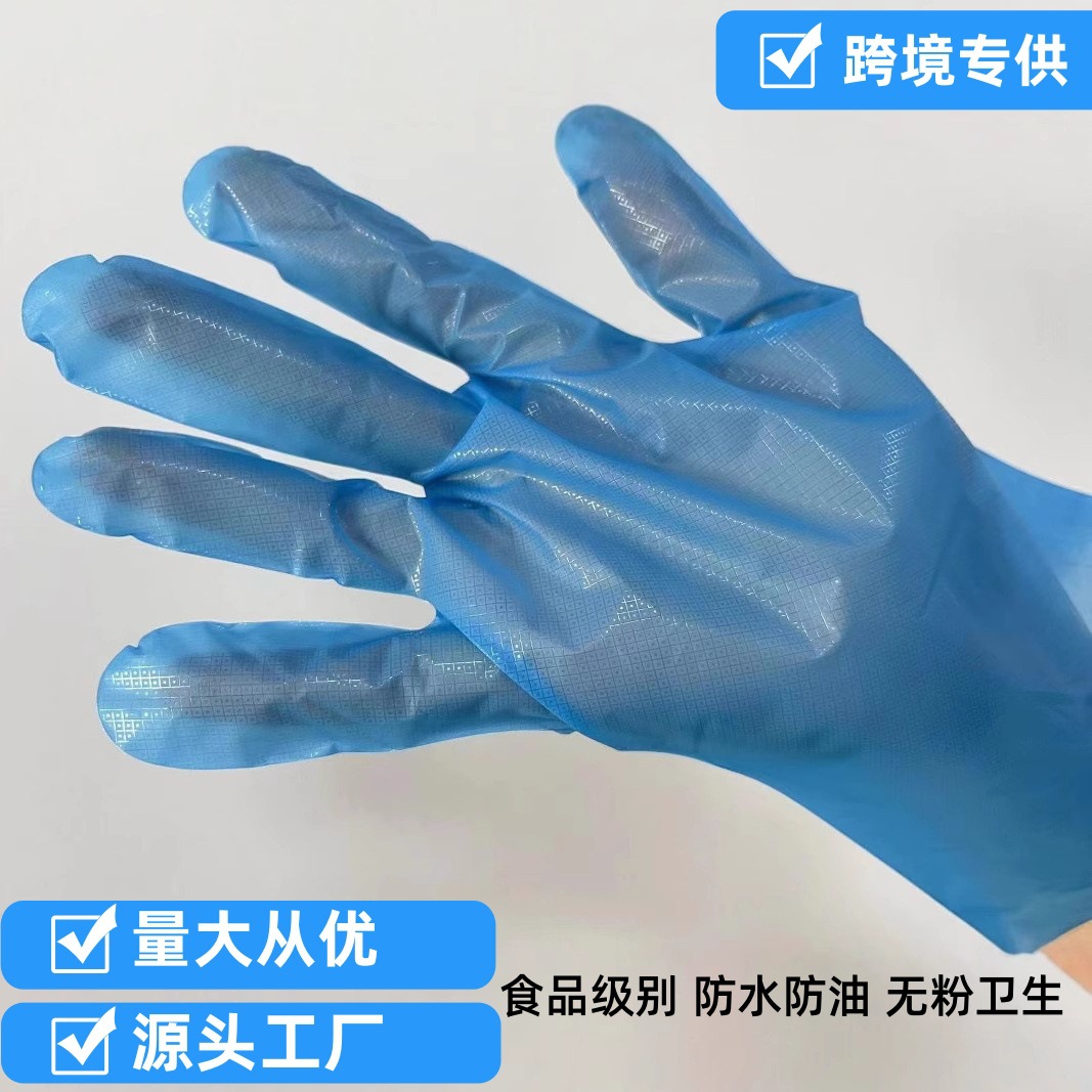 跨境一次性手套TPE食品级手套蓝色弹性家务美发美甲加厚餐饮手套