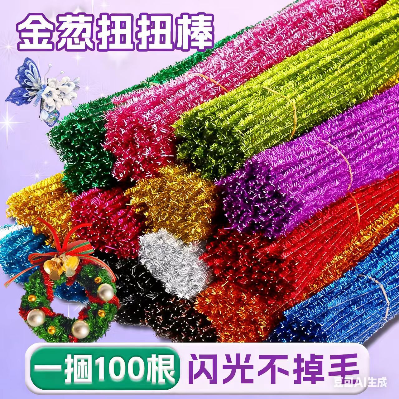 金葱闪光扭扭棒毛根 扭扭棒儿童手工diy益智玩具金葱毛条环保创新