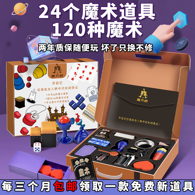 魔天楼魔术道具大礼盒扑克非成人儿童玩具生日礼物益智魔法套装箱