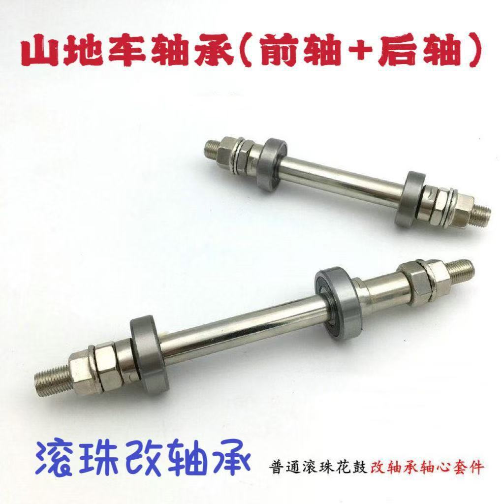 山地车后轴自行车花鼓滚珠轴心改装轴承前后轴实心轴螺杆中轴配件
