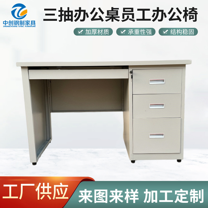 加工定制不锈钢带抽屉电脑台式加厚三抽办公桌家用书桌员工办公椅