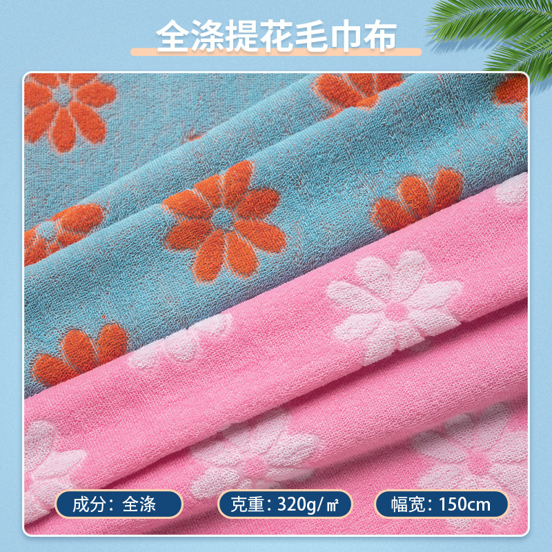 现货供应320克提花毛巾布面料纬边全涤单面四面弹性涤纶针织提花