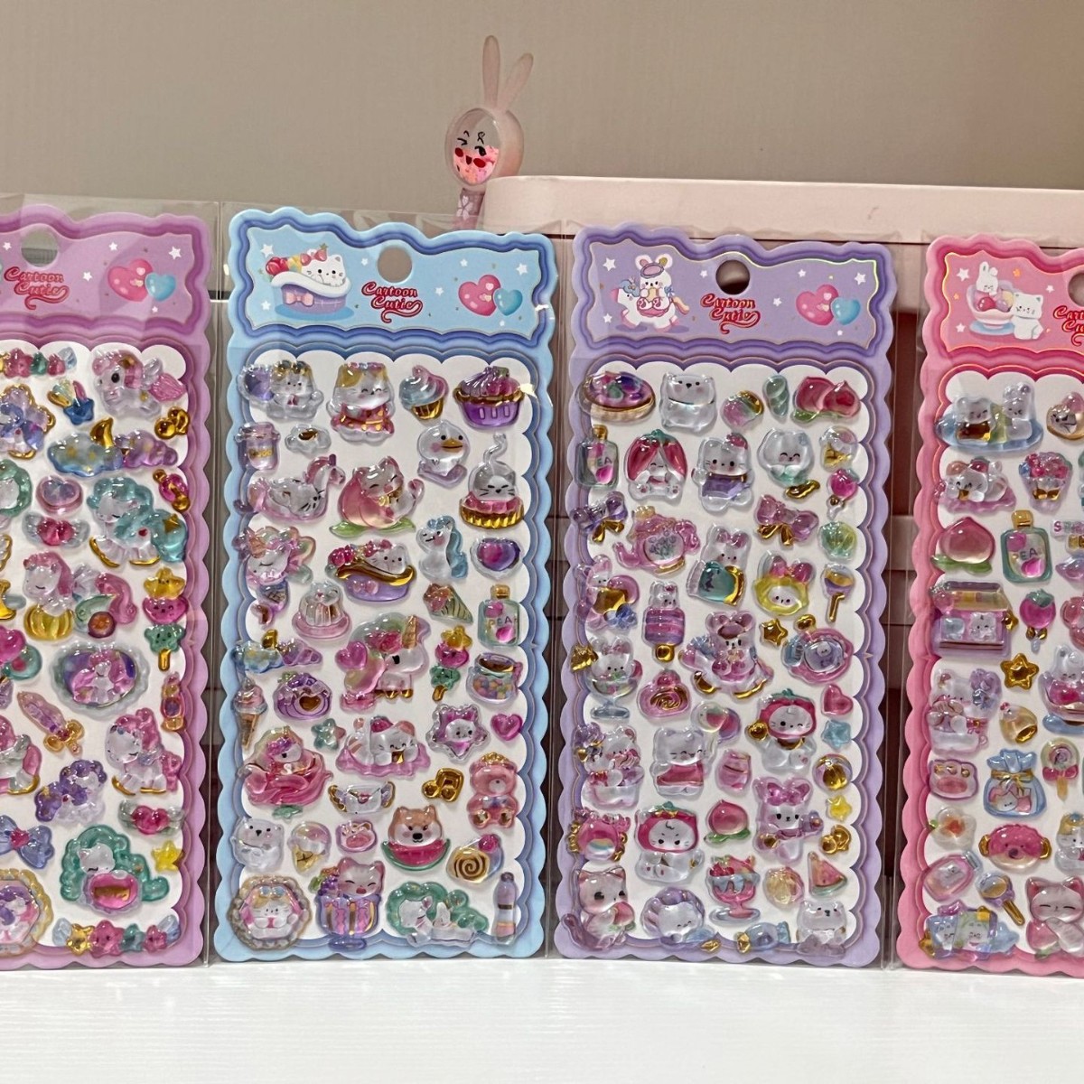 可爱眉心贴贴纸女孩卡通贴纸可爱水晶滴胶3d立体浮雕贴纸四色混发