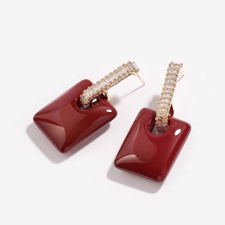 秋冬安可拉红几何女士耳环2024新款轻奢大气高级感过年新年耳坠