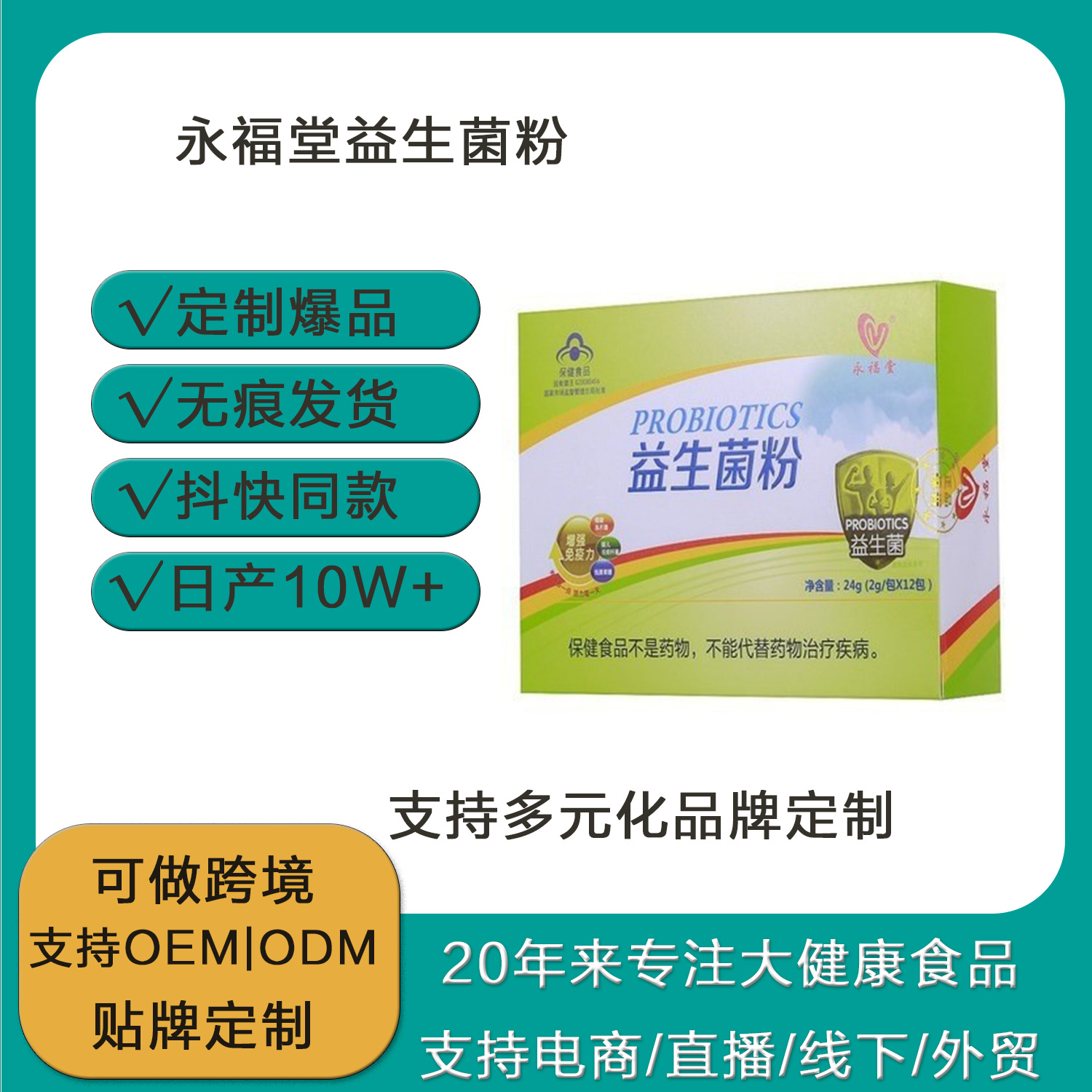 跨境定制代工活性乳酸菌粉OE M贴牌代工活性乳酸菌粉厂家整箱批发