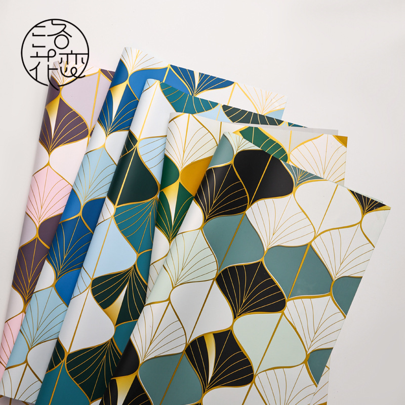 包花纸金色弧扇立体纸防水加厚花艺鲜花礼品包装纸花束压纹纸打包