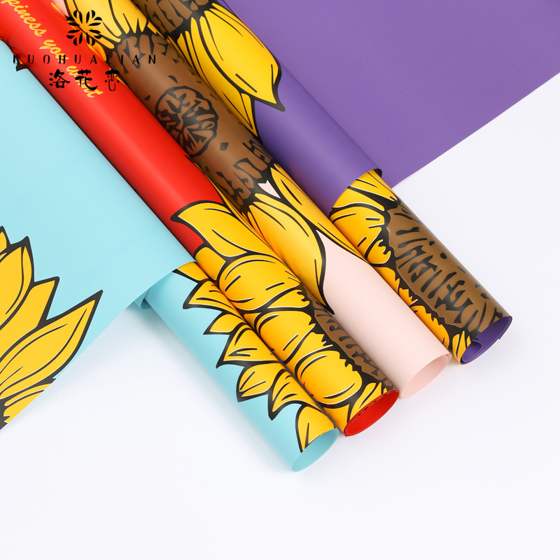 太阳花英文鲜花包装纸印花加厚防水珠光膜 花店花束包花材料批发