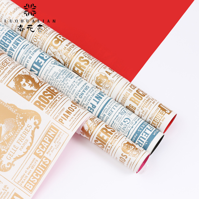 现货批发巴黎甜心复古包花纸防水礼品花束包花纸花店鲜花包装纸