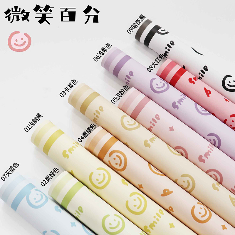 微笑百分百花束包装纸防水印花浪漫小清新微笑表情花艺包装花店用