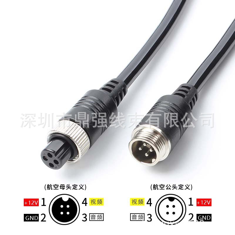 4芯航空公母头尾线音频线视频线连接线20CM车载监控摄像头转接线