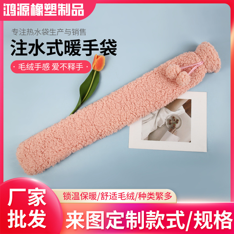 兔毛绒长条热水袋布套加长款注水灌水加厚暖手袋大号保暖用品家用