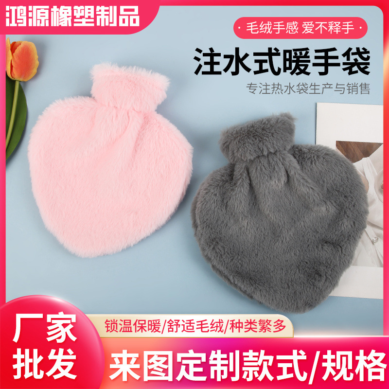 冬季毛绒心形注水橡胶热水袋布套小号加厚暖手袋家用保暖用品批发