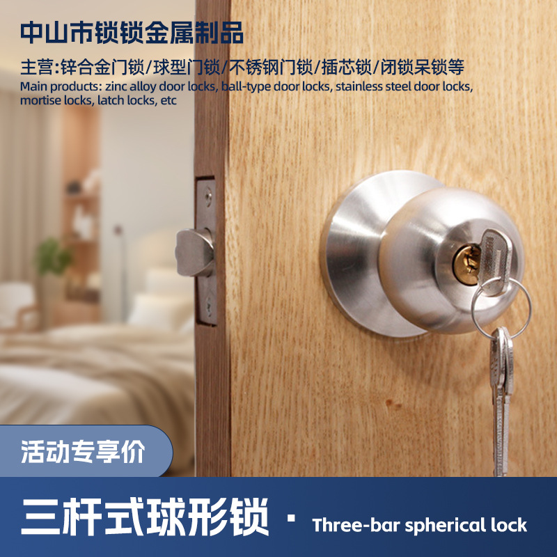 球形锁单房门防盗门不锈铁锁家用通用卧室门锁洗手间一体式门锁