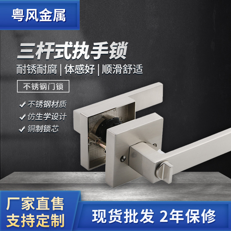 不锈钢拉丝呆锁 三杆式家具铜芯闭锁具 出租屋通道防盗门双面闭锁