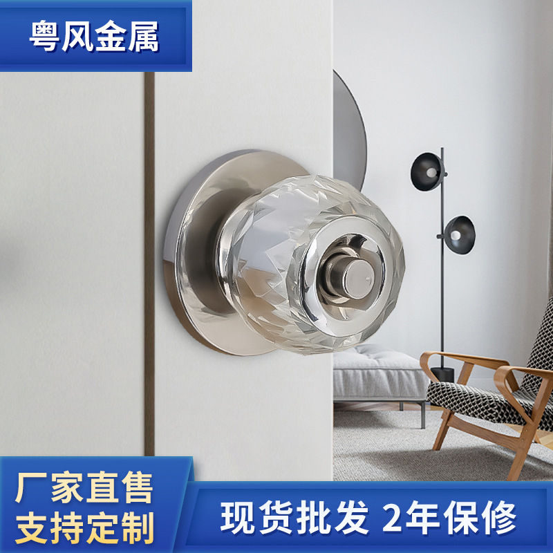 轻奢水晶球形门锁 室内不锈钢家具锁 卧室房门家居办公铜芯球形锁