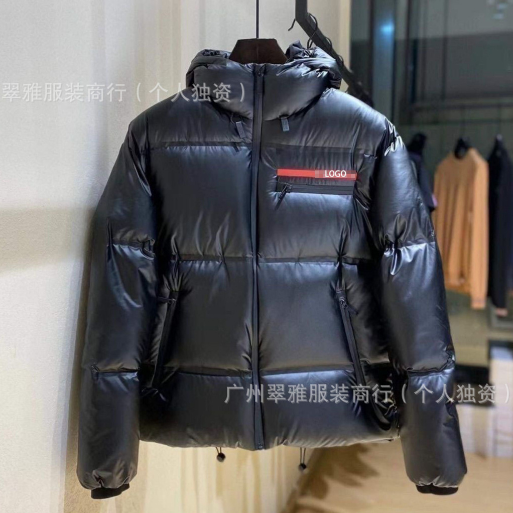 Pr家跨境拉链红标字母棉服高版本新款男女秋冬时尚宽松连帽外套