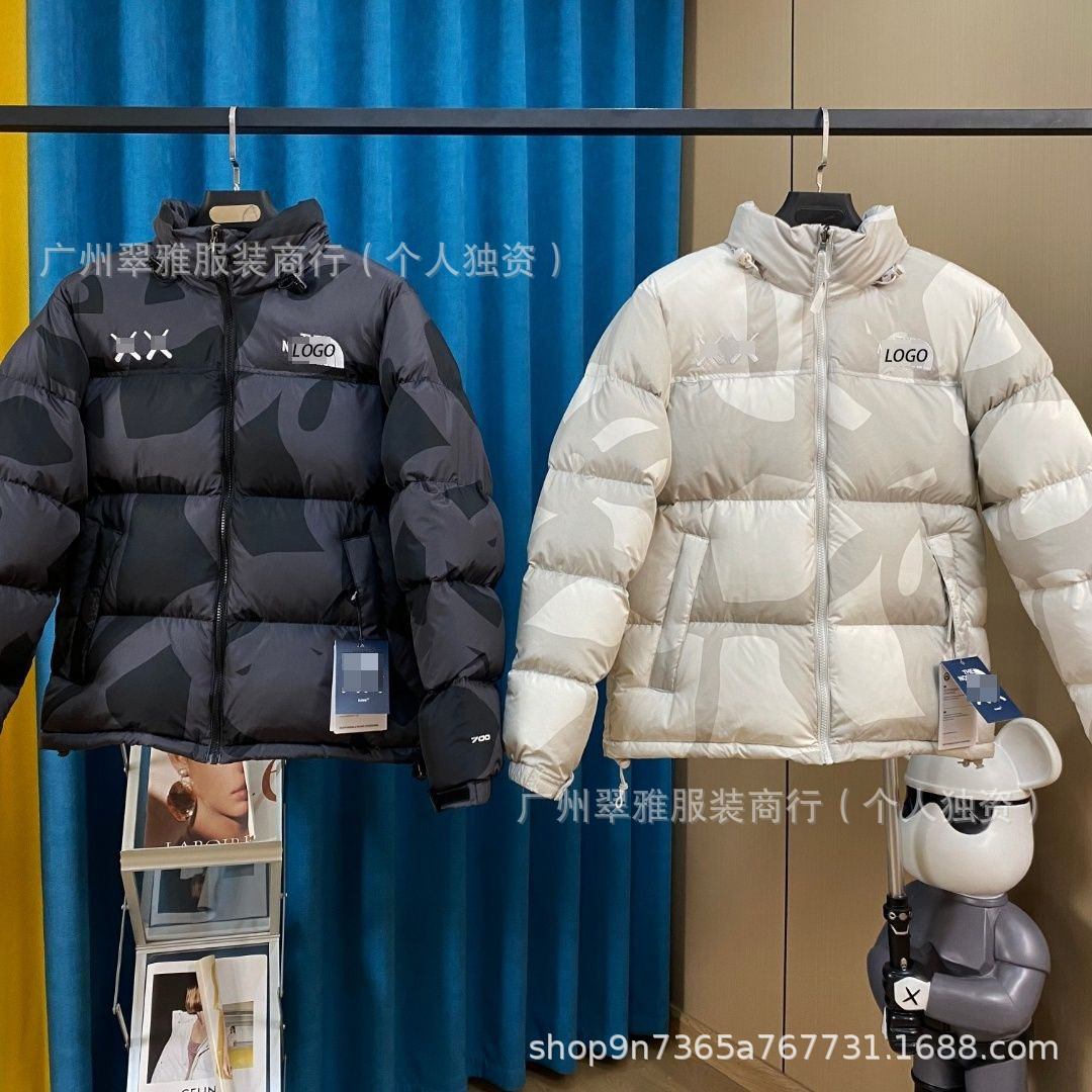 北家1996美版跨境Kaws联名棉服男女外贸外套情侣保暖防风迷彩外套
