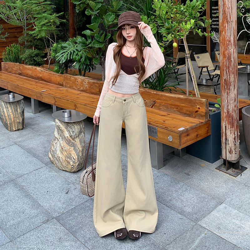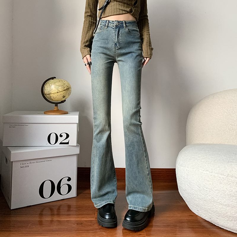 实拍复古牛仔长裤女2025秋季新款韩版高腰弹力宽松显瘦阔腿喇叭裤