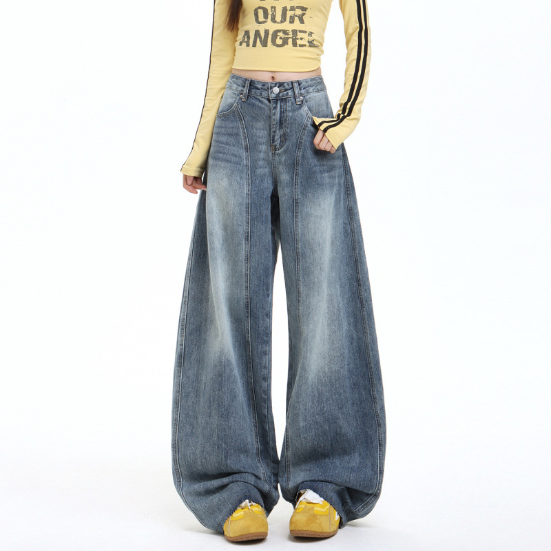 2025冬季新款美式高腰复古牛仔长裤女宽松设计感垂感镰刀裤弯刀裤