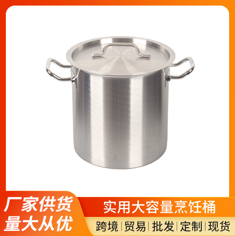 不锈钢汤锅带盖双耳复合底汤桶商用酒店卤肉煲汤不锈钢烹饪桶厂家