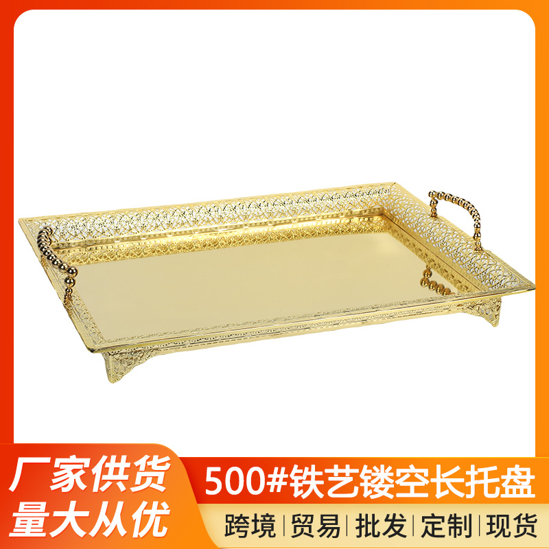 金色轻奢金属托盘 长方形镂空茶盘水果盘客厅家用收纳长托盘批发