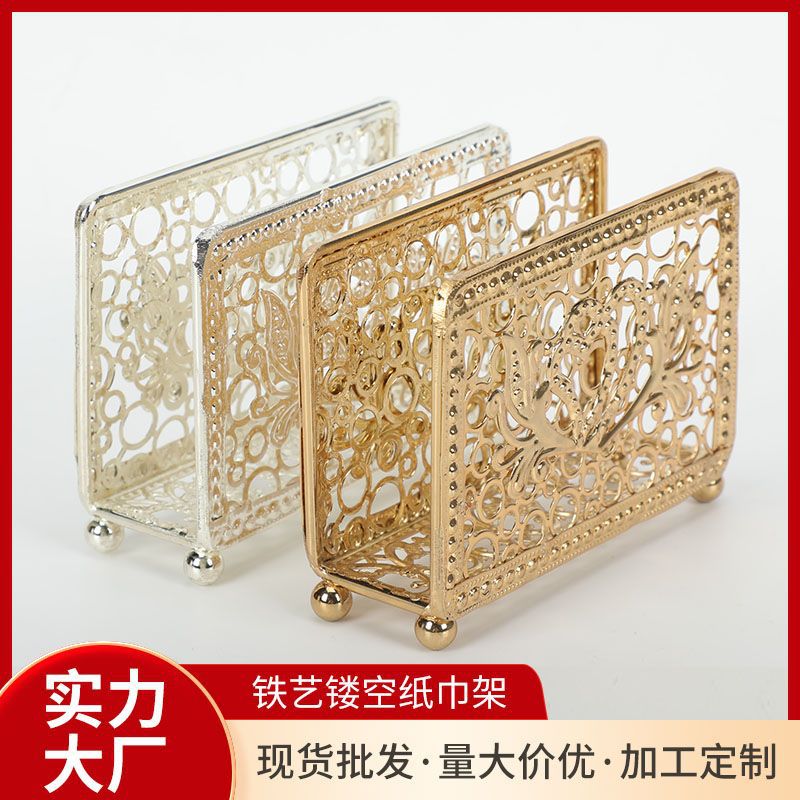 跨境轻奢桌面餐巾纸架 金属铁艺镂空收纳架西餐厅酒店立式纸巾架