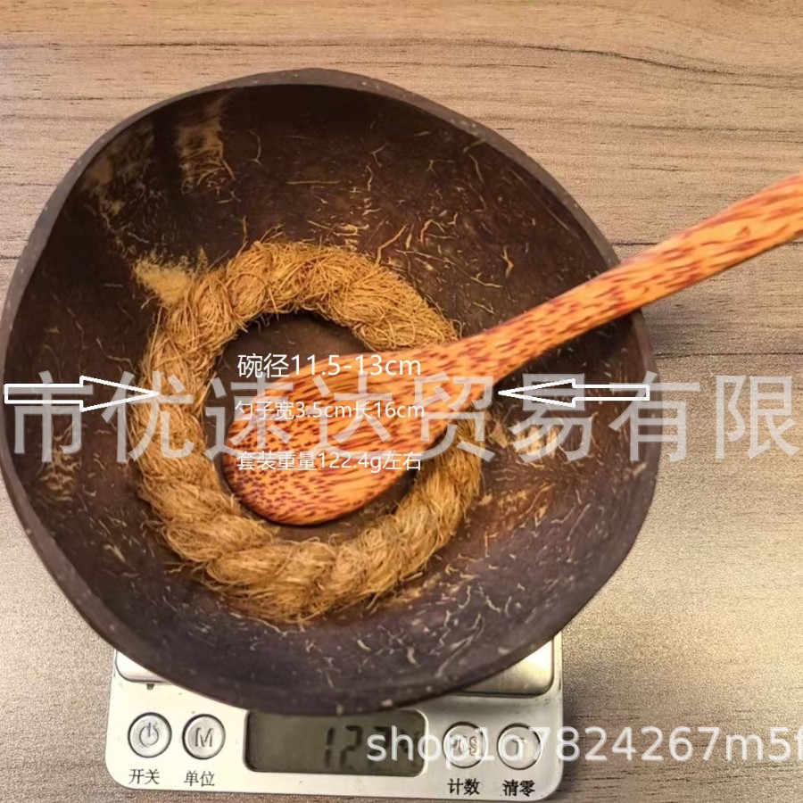 外贸套装天然椰子壳椰壳水果沙拉碗越南木勺海南椰子碗勺降解