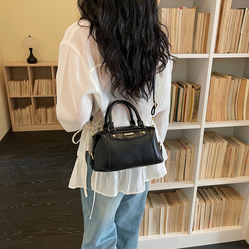 跨境时尚简约手拎包女2026新款抽带洋气单肩包复古风斜挎水桶包女